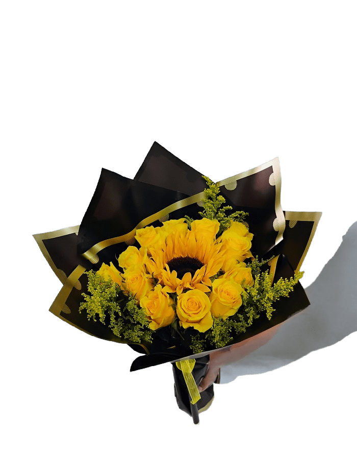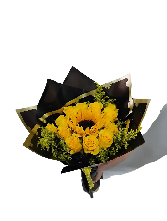 12 Yellow Roses and a sunflowers,