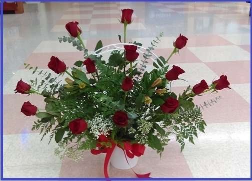 15 wonderful roses beautifully arranged in a unique design.