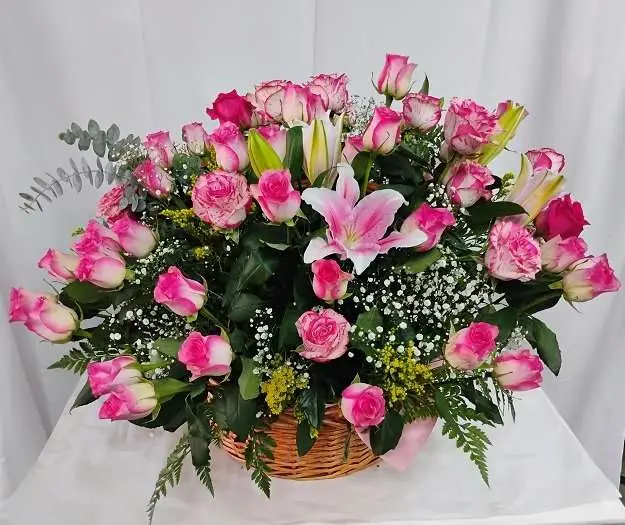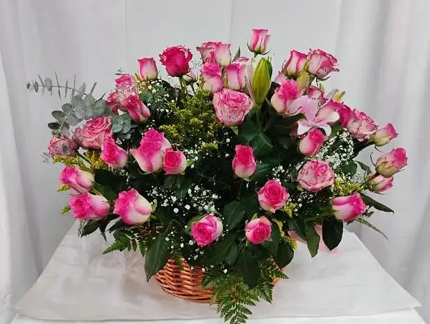 60 Beautiful roses in a basket,elegant,big and beautiful basket with roses.