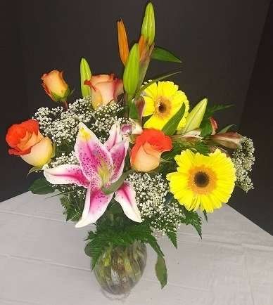 Send best wishes flowers and best thoughts to your love. Beautiful fresh flowers in a vase.