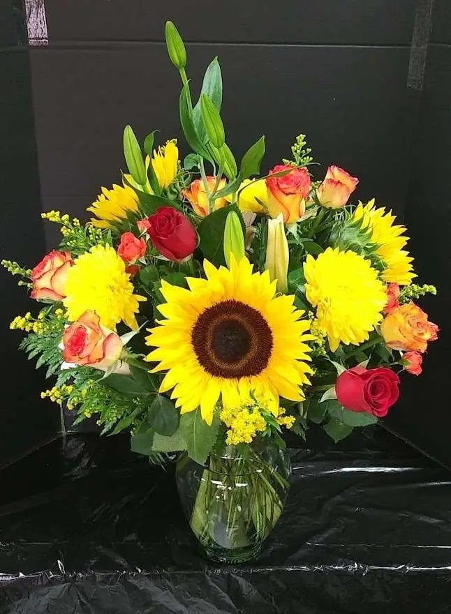 Beautiful orange roses, sunflowers, lilies, red roses, and more at Estrella’s Flower Shop.