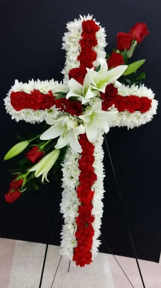 Funeral cross to say goodbye to a friend or love ones. beautiful flowers, great design.