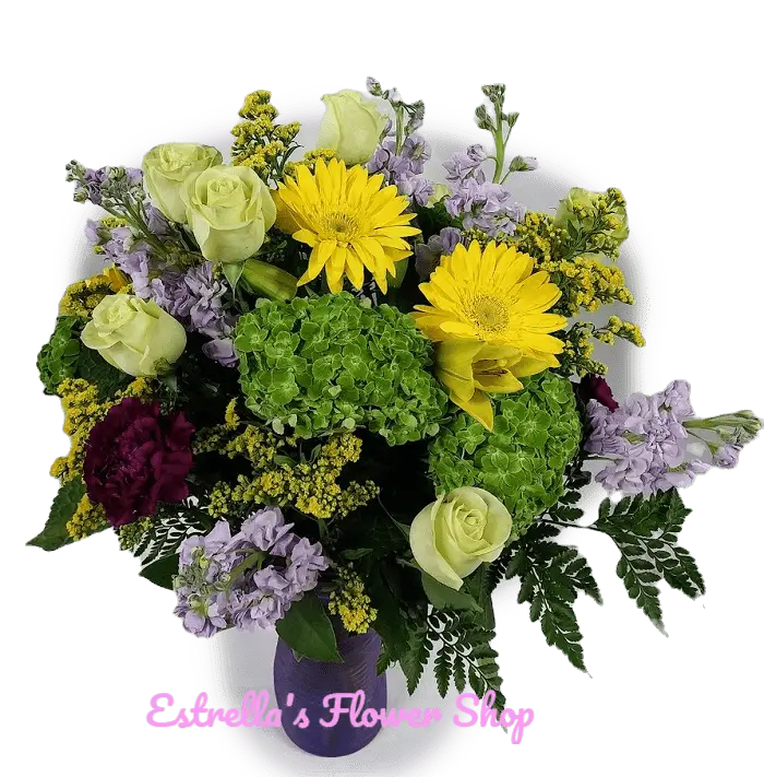 Cut fresh flowers in vase this combination of color is beautiful, unique and elegant. Estrella’s Flower Shop send flowers in Dallas and surrounding cities in Dallas & surrounding areas.