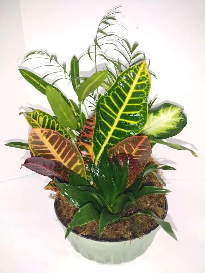 Green plants in a beautiful dish garden design.