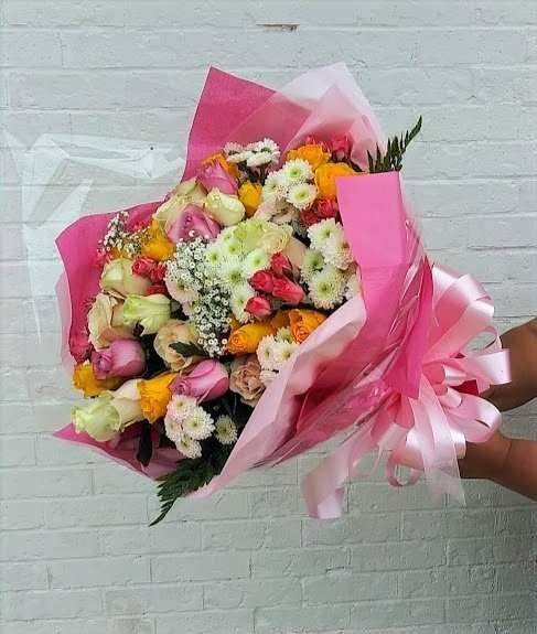 Say happy birthday with a mix flowers bouquet in a wrapped presentation.