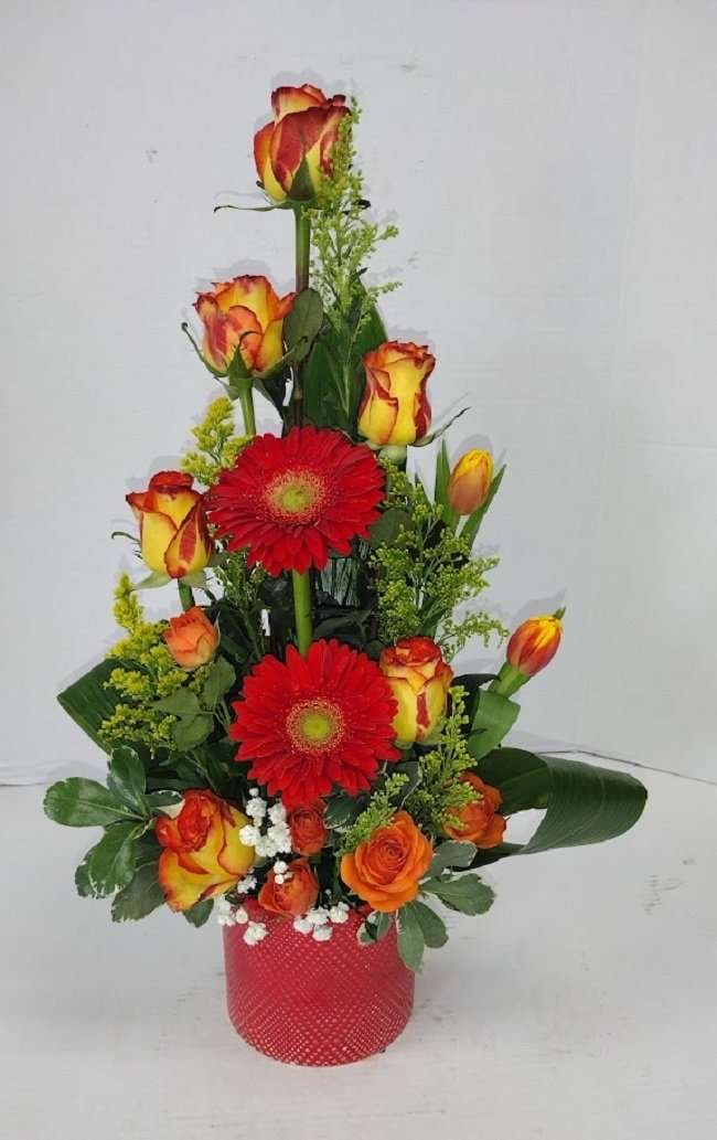 Orange roses and other beautiful orange flowers.