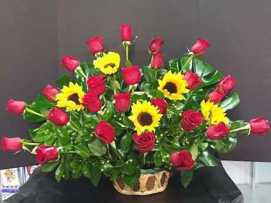 24 exquisite and long stem red roses in a unique and super elegant design, plus 4 marvelous sunflowers in the correct place to create such beautiful arrangement.