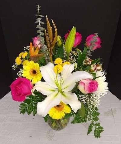 Fresh flowers in a crystal vase.