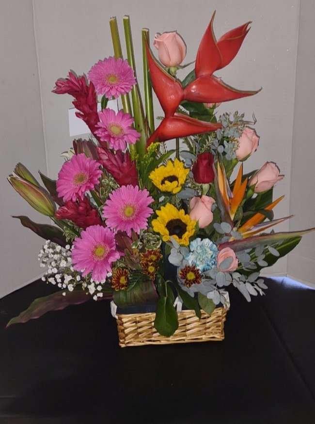 Of course Estrella’s Flower Shop may design a tropical flowers basket or bouquet combine with other kind of flowers; example, roses and tropical flowers.