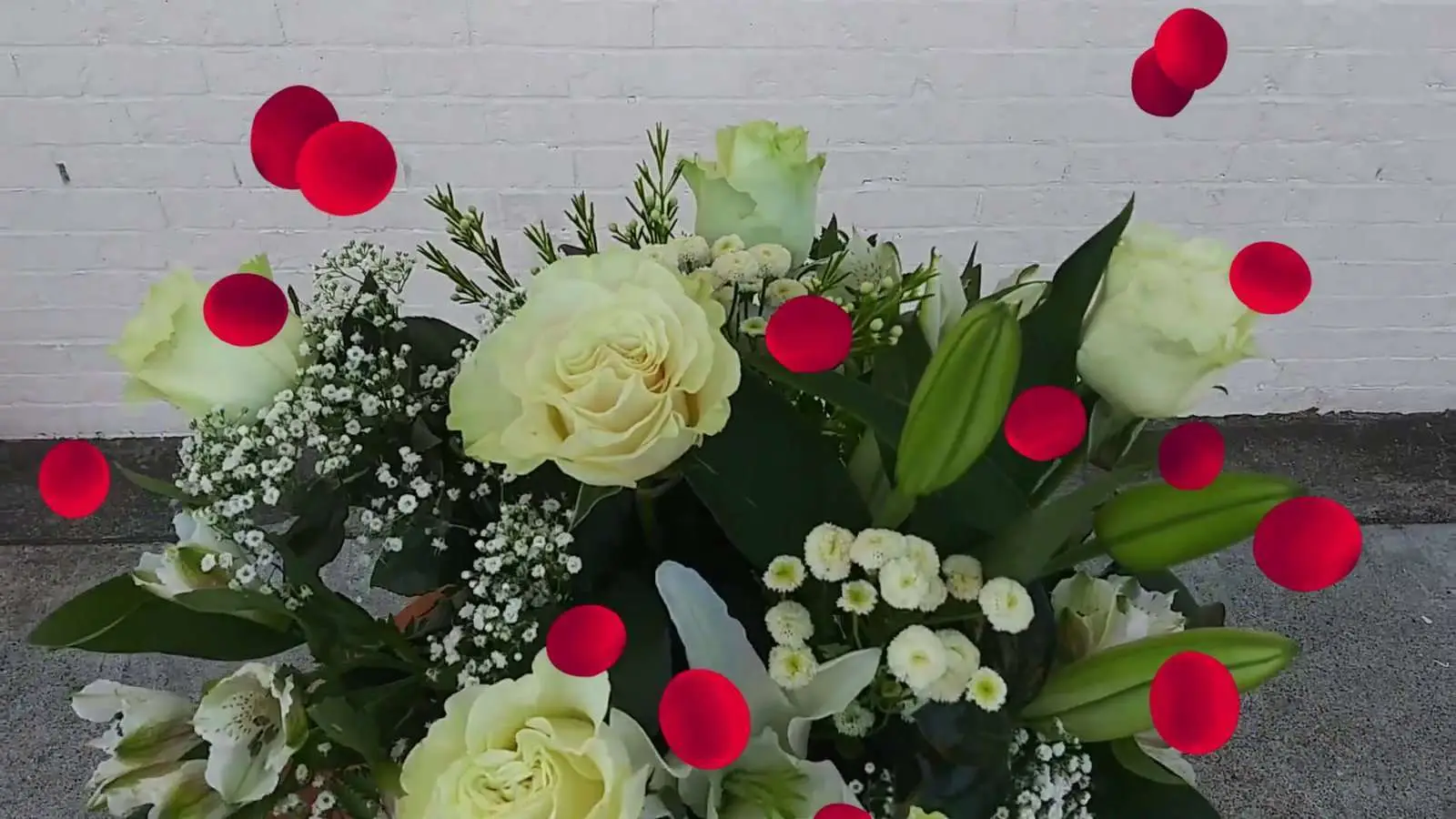 The name has the best and exact description of this beautiful white roses, daisies, and a lily.