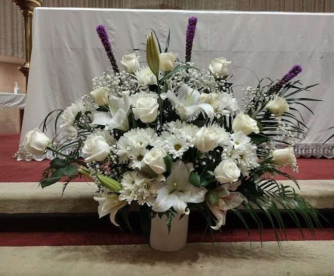 White flowers basket.