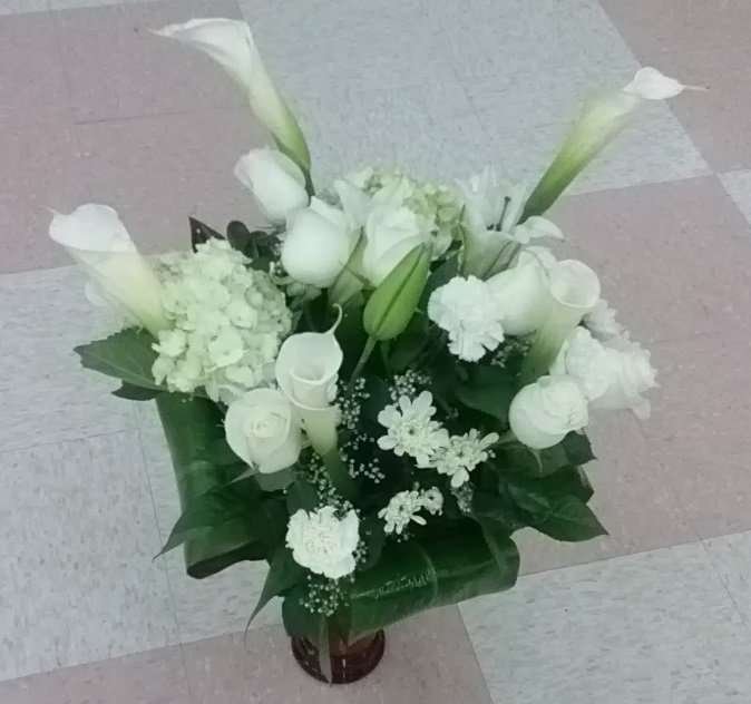 My wedding flowers; Elegant callas,long stem roses,spiders,gypsophila or better known as baby’s breath and exotic orchids, plus green leaf and more